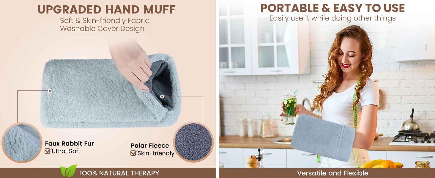 Microwavable Therapy Hand Muff, Moist Heated Hand Warmer Pouch Relief for Hands and Fingers Arthritis, Stiff Joints, Raynaud's, Trigger Finger, Unscented Hands Mitts Warmers with Washable Cover